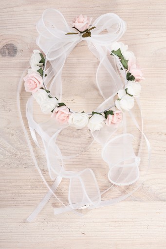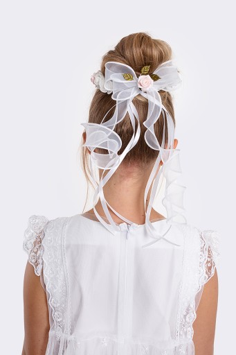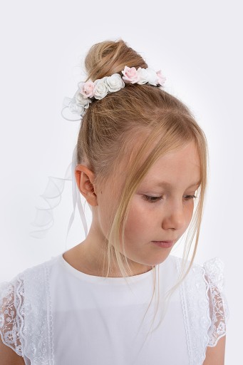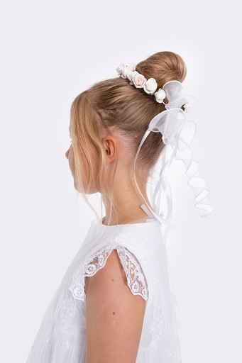 Winek komunijny na koczek należy do kolekcji wianki jak żywe od kwiaciarki. Wspaniale prezentuje się na każdej dziewczynce niezależnie od wybranej stylizacji koka.