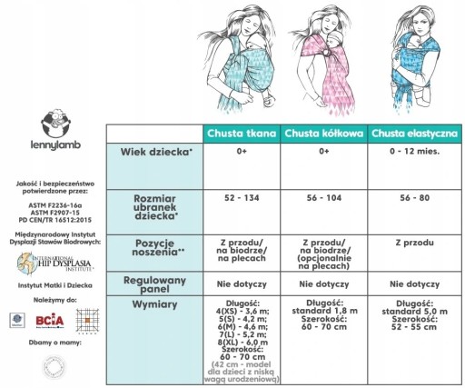 Chociaż nasze maluszki są oczywiście najważniejsze na świecie, to w tym przypadku musisz się powstrzymać. Po ustaleniu, do jakich wiązań chusta będzie używana, najpowszechniejszym kryterium względem osoby noszącej jest rozmiar ubrań oraz w mniejszym stopniu wzrost. Jeśli z jednej chusty będą korzystać dwie osoby, wybieramy taką, która będzie odpowiednia dla tej większej :)