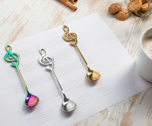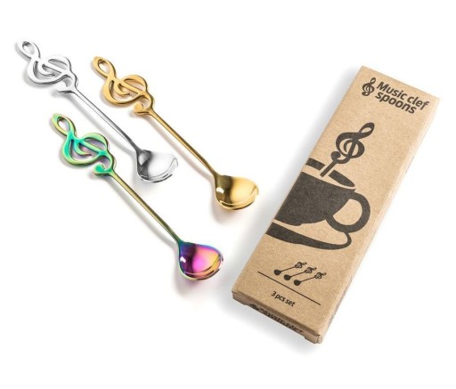 Zamieszaj pozytywnie już od rana, Twoją ulubioną kawę lub herbatę, z naszymi muzyczni łyżeczkami z rączką w kształcie klucza wiolinowego. Muzyczne łyżeczki w trzech kolorach, złotym, srebrnym i tęczowym, by każdy meloman odnalazł coś dla siebie, a wszystko poszło śpiewająco :)