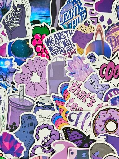 ФИОЛЕТОВЫЕ велосипедные наклейки для ноутбука MIX 50 шт.