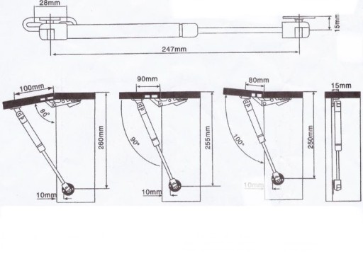 Podnośnik gazowy 80N Rejs. System umożliwia płynne i łatwe otwieranie i zamykanie frontów meblowych.