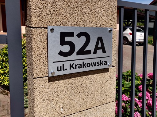 Jeżeli chcą Państwo na tabliczce skrót np. "ul." lub "os.", należy również wpisać go w informacji do sprzedającego. Prosimy o dokładne wpisanie tekstu jaki ma się znaleźć na tabliczce.