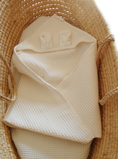 - Wafelkowy ręczniczek z kapturkiem, chroniącym główkę Twojej pociechy, jest mięciutki i chłonny, a dzięki wykonaniu z ekologicznej bawełny jest przyjazny dla skóry dziecka. Sprawdzi się po kąpieli w domu, na plaży czy basenie. Można wykorzystać go także jako kocyk lub mata do zabawy.