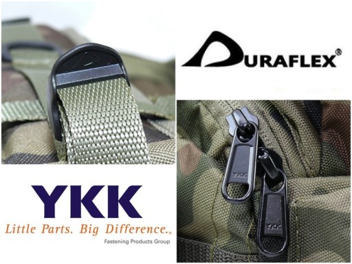 Wykonany z bardzo mocnej, trwałej tkaniny typu Codura RIP-STOP - wzmocnionej grubszymi krzyżującymi się włóknami (dlatego przy zbliżeniu widoczne są kratki na materiale), poprzez co jest znacznie trwalszy od klasycznych, w większości chińskich plecaków i pokrowców.