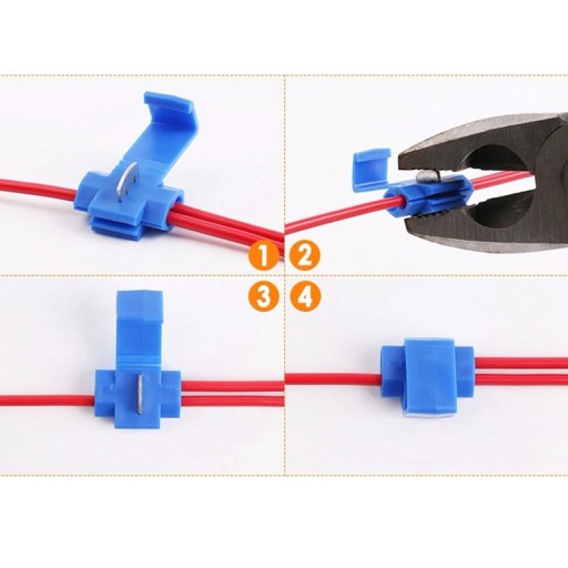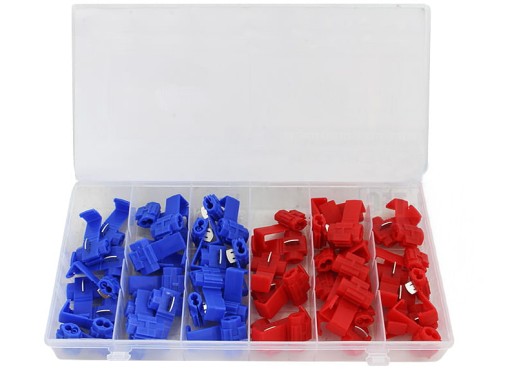 Zestaw szybkozłączek, w dwóch kolorach i rozmiarach, pasujących do najbardziej popularnych średnic przewodów elektrycznych. Szybkie połączenie przewodów bez lutowania oraz znacznego usuwania izolacji.
