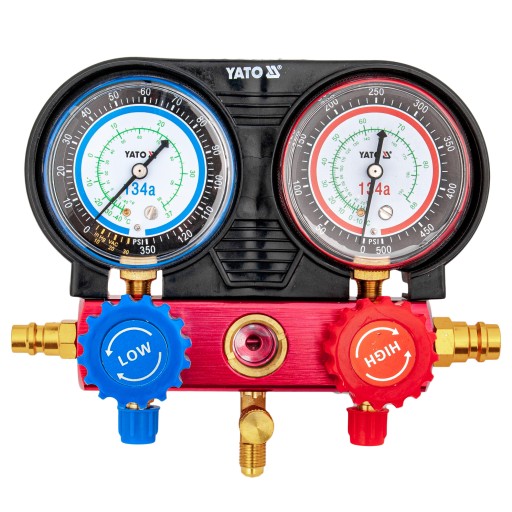 Zestaw do obsługi klimatyzacji niskociśnieniowej w zakresie 0-0.8 MPa, 0-120 psi oraz wysokociśnieniowej w zakresie 0-3.4 MPa, 0-500 psi