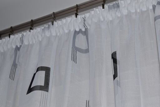 Prezentacja taśmy ołówek na firance po uszyciu.