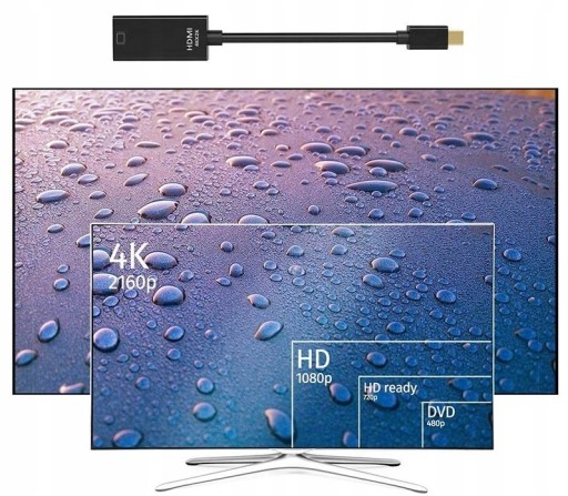 Adapter ten konwertuje sygnał z wejścia mini DisplayPort na sygnał HDMI o rozdzielczości ULTRA HD 4K 3840x2160 @30Hz oraz FULL HD 1080p @60Hz.