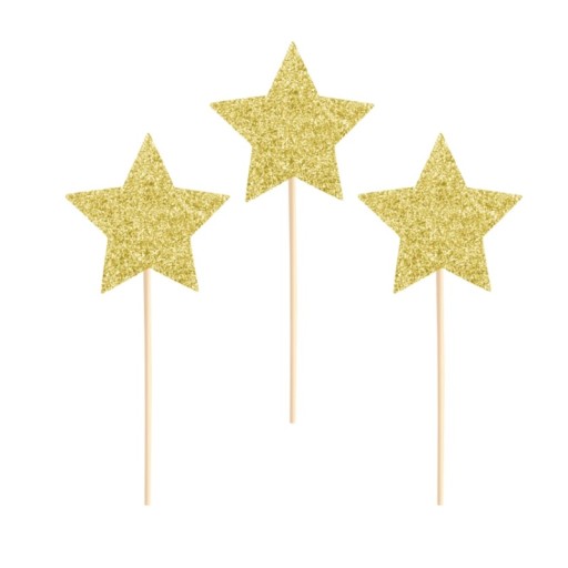 Toppery na tort gwiazdki brokatowe złote 6szt