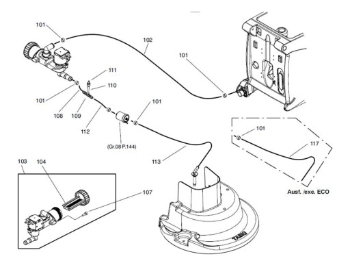 Elektrozawór odpowiadający za doprowadzenie wody/płynu bezpośrednio na szczotkę. Jego awaria skutkuje brakiem płynu na szczotce pomimo podświetlonej funkcji podawania płynu szczotka nadal pracuje na sucho.