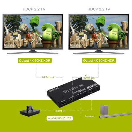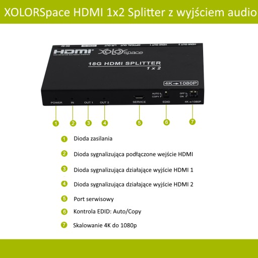 - XOLORSpace HDMI Splitter 1x2 UHD 4K z HDR HDCP 2.2
