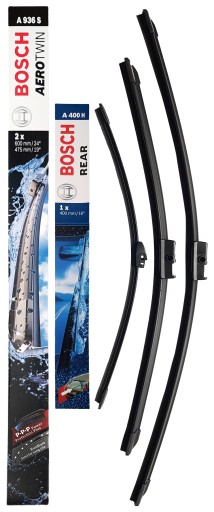KOMPLET PŁASKICH (BEZPRZEGUBOWYCH) WYCIERACZEK NA PRZEDNIĄ I TYLNĄ SZYBĘ MARKI BOSCH