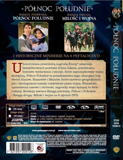 Uhonorowana prestiżową nagrodą Emmy adaptacja bestsellerowych powieści Johna Jakesa, przedstawia burzliwe wydarzenia i emocje, które zapoczątkowały wojnę secesyjną. Północ Południe ta ponadczasowa saga ukazująca losy dwóch klanów, Hazardów i Mainów, które zarówno geograficznie, jak i ideologicznie zostały rozdzielone przez wojnę. Nienawiść, uprzedzenia rasowe i chciwość, zagroziły więzi łączącej te dwie rodziny. Kolekcja zawiera Księgę pierwszą: Północ i Południe i Księgę drugą: Miłość i wojna na 6 płytach DVD.