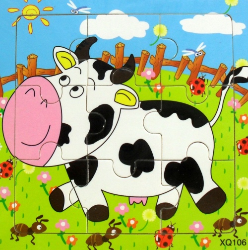 РАЗВИВАЮЩИЙ ДЕРЕВЯННЫЙ ПАЗЛ 9 деталей. КОРОВА