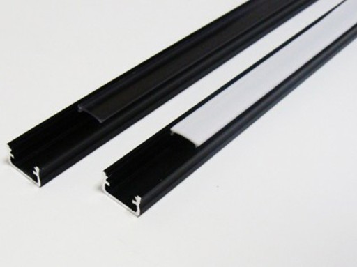 Profil aluminiowy płaski typ A czarny anodowany o długości 2 metrów + klosz 2mb z tworzywa PVC