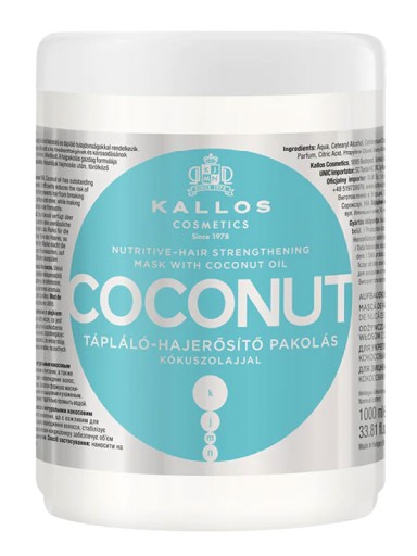 Kallos KJMN Coconut odżywczo-wzmacniająca maseczka do włosów z olejkiem kokosowym. Olej kokosowy ma doskonałe właściwości nawilżające i odżywcze, co jest niezbędnym warunkiem zdrowego wzrostu włosów. Skutecznie zmniejsza ryzyko uszkodzenia lub zniszczenia włosów, stabilizuje osłabione części włosów, w ten sposób zapobiegając zniszczeniu lub wypadaniu włosów. Bogata formuła maseczki do włosów sprawia, że włosy stają się gęste, miękkie, jasne i wyraźnie zdrowe.