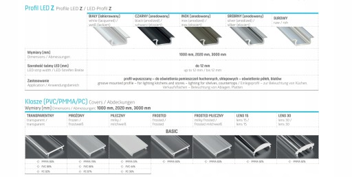Profil aluminiowy typ Z przeznaczony jest do montażu we frez o szerokim spektrum zastosowań. Doskonale nadaje się do stosowania jako element podświetleń dekoracyjnych w meblarstwie oraz wykończeniach wnętrz.