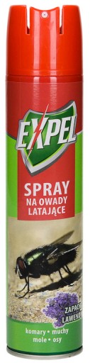 Expel spray na owady latające to preparat w aerozolu do zwalczania owadów latających. Spray skutecznie zwalcza: muchy, komary, muszki owocówki, osy i dorosłe osobniki moli odzieżowych w pomieszczeniach. Preparat pozostawia przyjemny, lawendowy zapach.