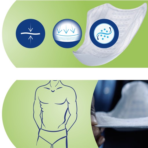 Wkładki TENA Men Active Fit Level 3 izolują wilgoć od powierzchni skóry, zamykając ją głęboko wewnątrz produktu.