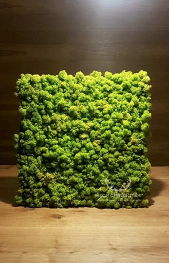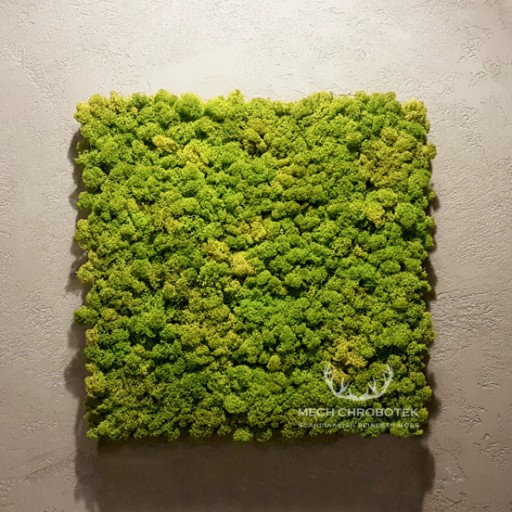 Produkt jest w 100% naturalny i uległ naturalnemu procesowi impregnacji a swój jasnozielony kolor uzyskał w wyniku barwienia preparatami naturalnego pochodzenia. Ze względu na łatwość aplikowania mchu znajduje on zastosowanie jako dekor przy tworzeniu przeróżnych produktów jak np.: panele z mchu czy obrazy. Mech nieoczyszczony - posiada warstwę korzeniową.