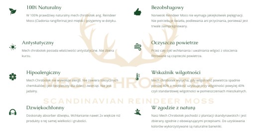 - Mech Chrobotek pochodzi wyłącznie z legalnych plantacji skandynawskich (prywatne lasy)