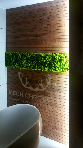 Nie zalecamy, ponieważ dzięki temu, że produkt jest w 100% naturalny, kolorystyka mchu nie jest jednorodna. Mech norweski nie jest w stanie wchłaniać barwnika jednakowo, co daje efekt naturalnego zabarwienia jaki występuje w naturalnej przyrodzie. Znacznie ładniejszym efektem jest mieszanie paneli na przemian jasnozielony z ciemnym zielonym lub białym.