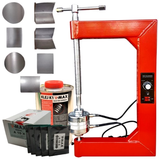 PROFEJSONALNY WULKANIZATOR DO NAPRAWY OPON / TERMOPRES AJD-10 + 7SZT. PROFILI + ZESTAW WKŁADÓW NAPRAWCZYCH V-MAX A10X (20SZT.) + KLEJ NA GORĄCO V-MAX K1 1L