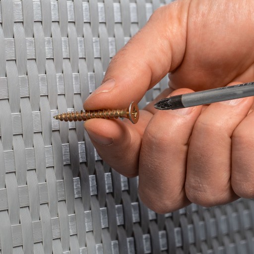 Montaż będzie bardziej estetyczny, jeśli włożysz śrubę lub gwóźdź pod pasek z technorattany, który później posłuży jako osłonka na śrubę/główkę gwoździa.