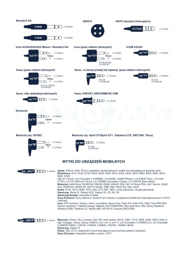 DOSTĘPNE TYPY ZŁĄCZY: K (Navcomm, Kenwood, Baofeng), S2/S3 (Icom), Y1 (Yaesu/Vertex)