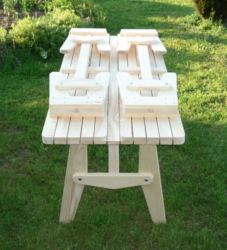 Ze względu na wysoką jakość produktu (i czasochłonność wykonania) termin realizacji dla ilości powyżej 4szt prosimy uzgadniać indywidualnie.Termin realizacji podany w aukcji dotyczy wysyłki maksymalnie czterech kompletów do jednego klienta. Składane nogi dają możliwość schowania go na zimę w garażu lub magazynku bez konieczności zajmowania dodatkowej przestrzeni.