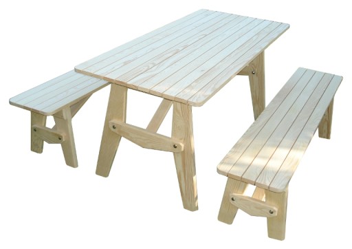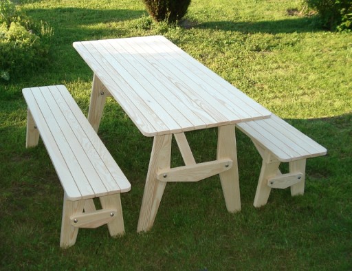 - Bardzo prosty montaż: Aby złożyć stolik lub ławkę przykręcamy tylko dwie śruby.