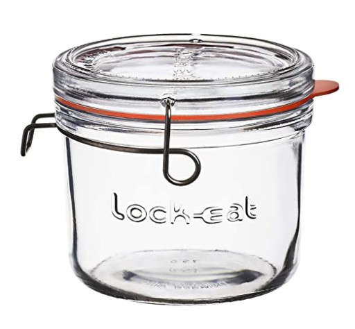 Słoik Lock Eat marki Luigi Bormioli wykonany został z grubego, przezroczystego szkła i wyposażony w gumową uszczelkę oraz stalowe zapięcie zapewniające hermetyczność naczynia. Opatentowany przez włoską firmę sposób zamykania i otwierania słoika jest niezwykle łatwy i pozwala całkowicie ściągnąć pokrywkę ze słoika.