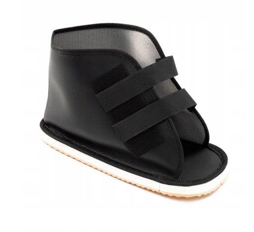 Uniwersalny (możliwy do stosowania zarówno na lewą jak i prawą nogę) buty ochronny na gips z dodatkowymi osłonami idealny jest do stosowania jako osłona gipsu oraz innych opatrunków. Polecany również dla ochrony obrzęków różnego rodzaju i pochodzenia w sytuacji, kiedy pacjent nie może użytkować tradycyjnego obuwia.