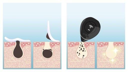 Zalecamy korzystanie z trybu intensywnego ssania - 5-stopniowego z tą głowicą, ponieważ może on skutecznie i szybko usuwać zaskórniki i inne zanieczyszczenia poprawiające krążenie krwi, pozwalając skórze oddychać i odmładzać. Można to również zastosować do większych zaskórników zarówno w obszarach twarzy i ciała, takich jak plecy, ramiona, łokcie, kolana i kostki.