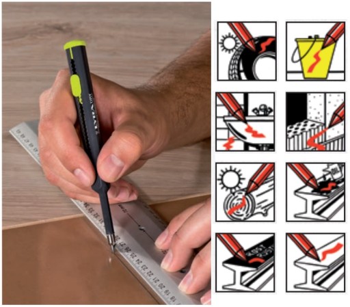Lyra Dry to prosty w budowie znacznik który pomaga podczas wszelkich prac budowlanych, stolarskich, instalatorskich oraz podczas weekendowego majsterkowania.