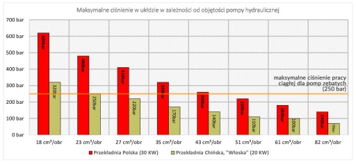 - Przekładnia importowana może pracować na ciśnieniu 170 bar