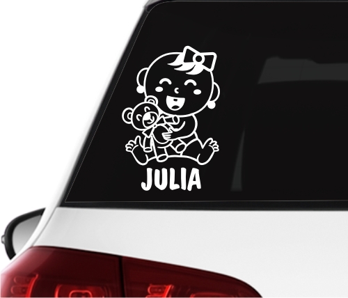 Наклейка на окно автомобиля РЕБЕНОК В МАШИНЕ Малыш ВАШЕ ИМЯ *24см