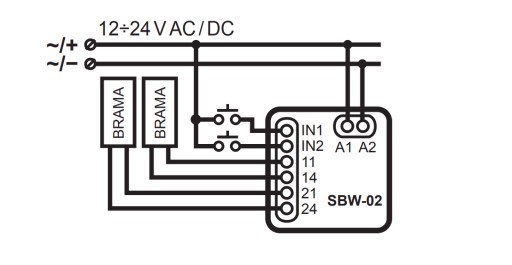 - zasilanie sterownika 12-24V AC/DC