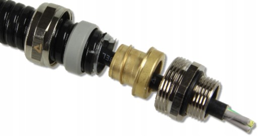 Seria mosiężnych niklowanych, kompaktowych dławików przeznaczonych do stosowania z metalowymi peszlami Anaconda Multiflex oraz Multitite.