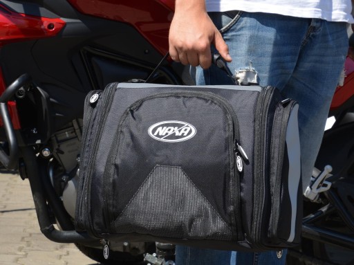 Torba motocyklowa na tył motocykla (nie wymaga stelaża, montowna na tylnym siedzeniu lub bagażniku). Opcja plecaka, torby naramiennej oraz poszerzania przesterzeni bagażowej