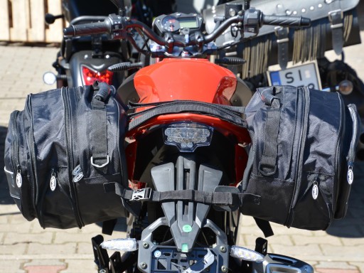 Torby/sakwy motocyklowe na tył motocykla (nie wymaga stelaża, montowana na tylnym siedzeniu ). Opcja torby naramiennej oraz poszerzania przestrzeni bagażowej