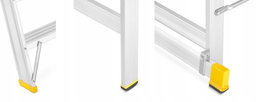 - Aluminiowe burty boczne zabezpieczające przed możliwością postawienia stopy poza platformą bądź przed spadkiem narzędzi z platformy