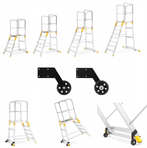 Niższe drabiny magazynowe ALOSS można wyposażyć w 2 koła jezdne, aby umożliwić łatwe i wygodne przemieszczanie drabiny. Jak odbywa się przemieszczanie drabiny ? Można porównać do przemieszczania taczki - podnieś i przesuń w dowolne miejsce. Jeśli drabina jest podniesiona wówczas opiera się na kołach i można nią łatwo przesuwać. Rozwiązanie polecane, gdy poszukujesz drabiny, która będzie wykorzystywana w kilku miejscach i przemieszczanie jej będzie konieczne.