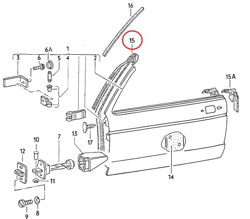 Оригинальный уплотнитель левой двери VW Golf 1 Cabrio