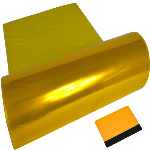 - Termoplastyczna folia przyciemniająca do lamp koloru żółtego / żółty / złota.