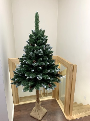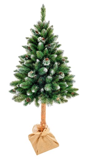 Choinka Sosna Diamentowa MONTANA Na Pniu Naturalnym to piękna, gęsta choinka , która na końcach igliwia posiada szyszkę naturalną oraz diamentowe kryształki najwyższej jakości, które pięknie lśnią w blasku lampek i czynią z choinki wyjątkową . Naturalny pień pięknie współgra z choinką i daje duże możliwości aranżacji.
