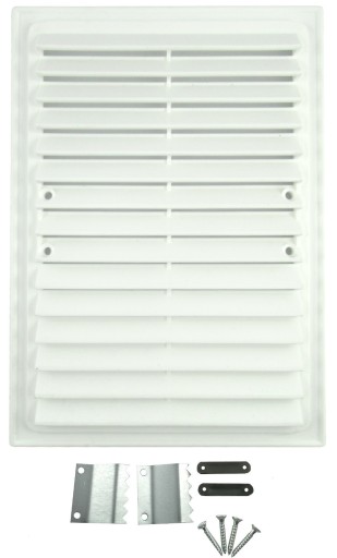 Kratka wentylacyjna do montowania wewnątrz i na zewnątrz budynku, zabezpiecza otwory wentylacyjne przed dostaniem się do nich niepożądanych rzeczy takich jak ptaki czy woda.
