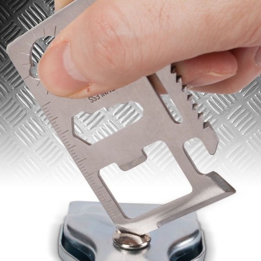 Niewielki przedmiot wielkości zwykłej karty kredytowej potrafi przydać się w wielu sytuacjach. Gadżet, który nie raz wyciągnie Cię z opresji lub ułatwi pozornie niewykonalną czynność. Dzięki karcie wykonanej ze stali nierdzewnej bez trudu otworzysz puszkę, dokręcisz śrubkę czy przetniesz sznur lub linę.