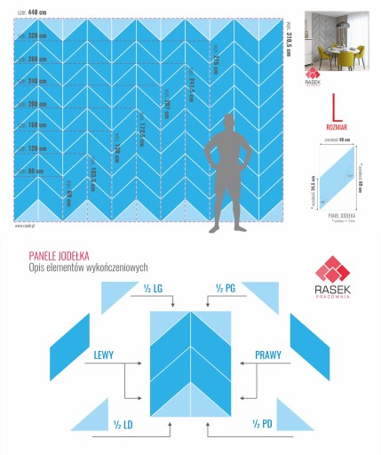 Panele tapicerowane z kolekcji JODEŁKA występują w 3 standardowych rozmiarach : M / L / XL