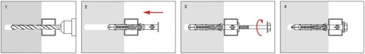 - specjalny kształt gwintu wkręta pozwala na precyzyjne wprowadzenie w pierwszej strefie rozpierania i zwiększenie siły rozpierającej w drugiej strefie rozpierania,